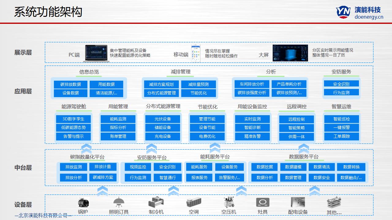 智慧用能能源管理平台是演能公司针对企业/园区的能源计量、监控运维、分析决策等功能提供的产品平台,通过工业物联与工业自动化技术的结合,针对企业水、电、气、热等各种形式能源进行监控、计量、分析、决策、控制等功能